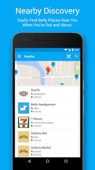 使用Belly ,我們提供一張客戶忠誠度卡以取代其餘的。將移動應用程序鏈接到可以在任何Belly業務中拾取的物理Belly卡。使用該應用程序的“附近的地方”功能在您外出時找到Belly的位置。在街上的甜甜圈店裡免費喝杯咖啡。在您當地的熟食店命名本月的三明治。您也可以第一次吃蛋糕,或者至少可以將其推入麵包師的臉上。